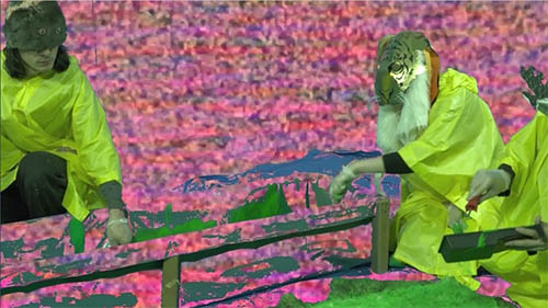 Green Skeen is a gathering and ritual to create a new technoanimal that is released into the city.