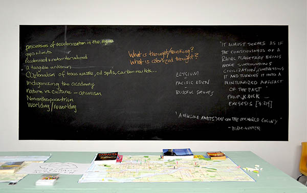 The residency included screenings and encounter-style discussion groups with local artists and academics (indigenous and settlers) to try to understand the complex issues around the local, non-metaphorical, context of decolonization, in relation to Philip K. Dick’s science fictional colonisation novels such as The Man in the High Castle (1962) or Martian Time-Slip (1964) and post-Vancouver novels A Scanner Darkly (1977) and Valis [Vast Active Living Intelligence System] (1981).